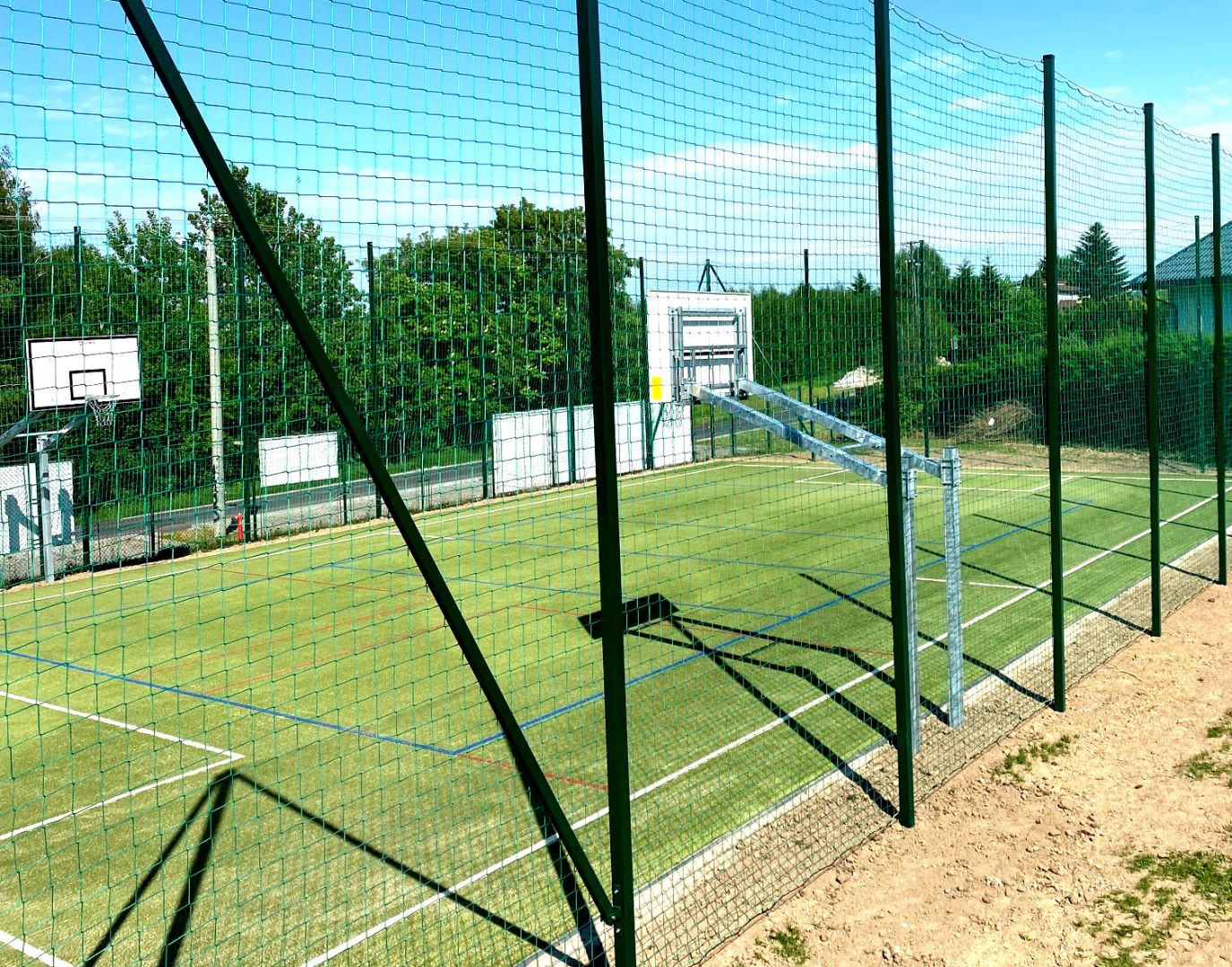 Każde z boisk wyposażone zostało w 2x bramki do piłki ręcznej, 2x kosze do gry w koszykówkę, 1x siatkówkę, oraz piłkochwyt wys. 6,0m.