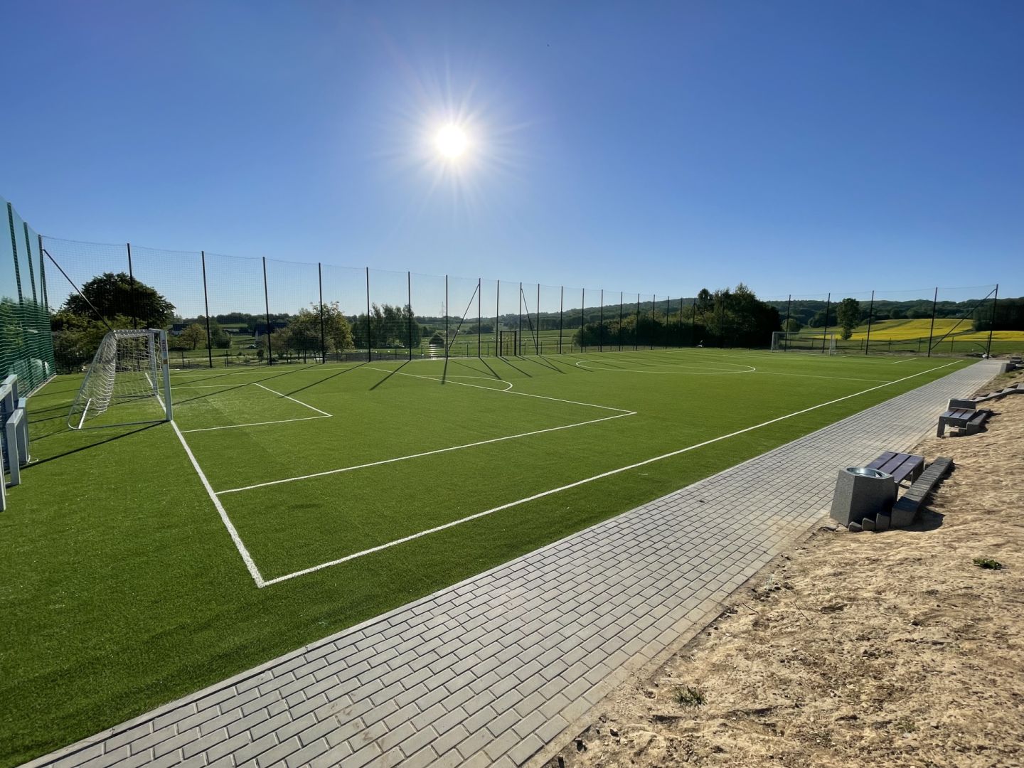 - budowa boiska do piłki nożnej o nawierzchni ze sztucznej trawy, o powierzchni 1400 m2, wraz z infrastrukturą sportową.
