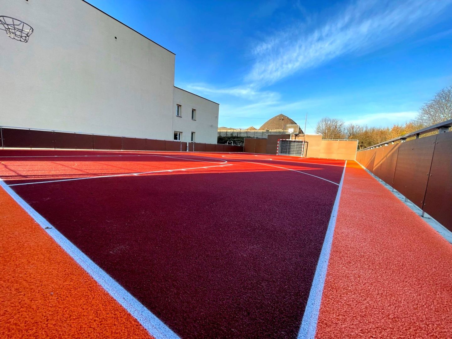 14. Wykonanie nawierzchni boisk : EPDM dwuwarstwowe.