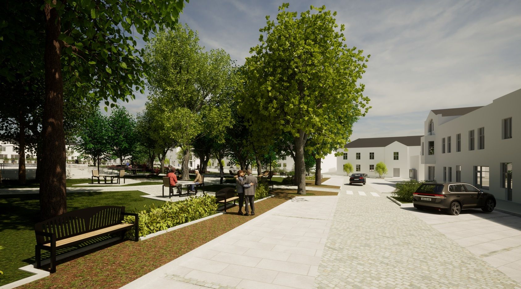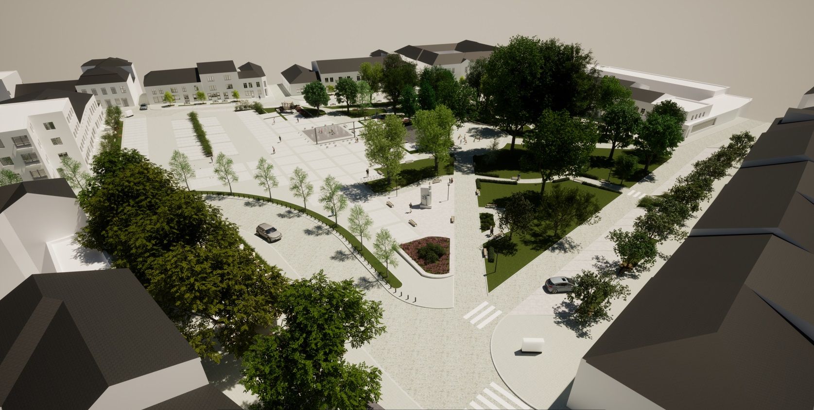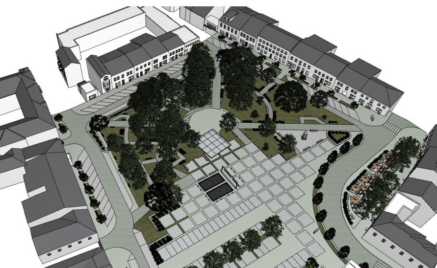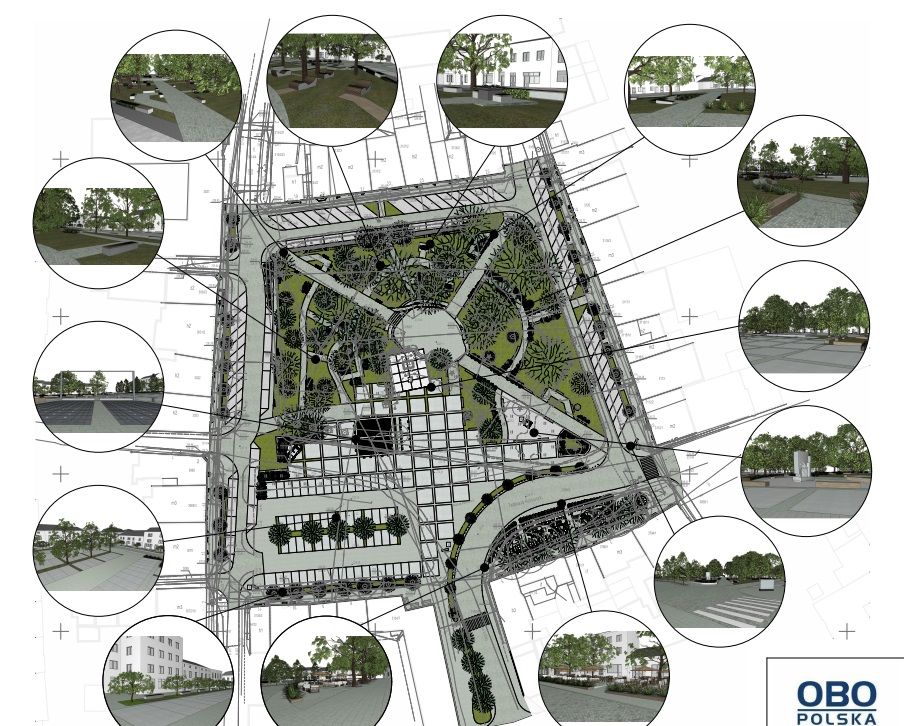 - Wykonanie nowej nawierzchni parkingu po stronie południowej Rynku z płyt granitowych w zróżnicowanych rozmiarach i odcieniach,