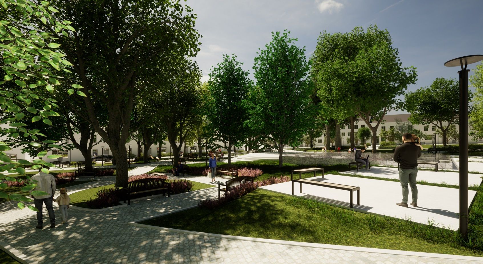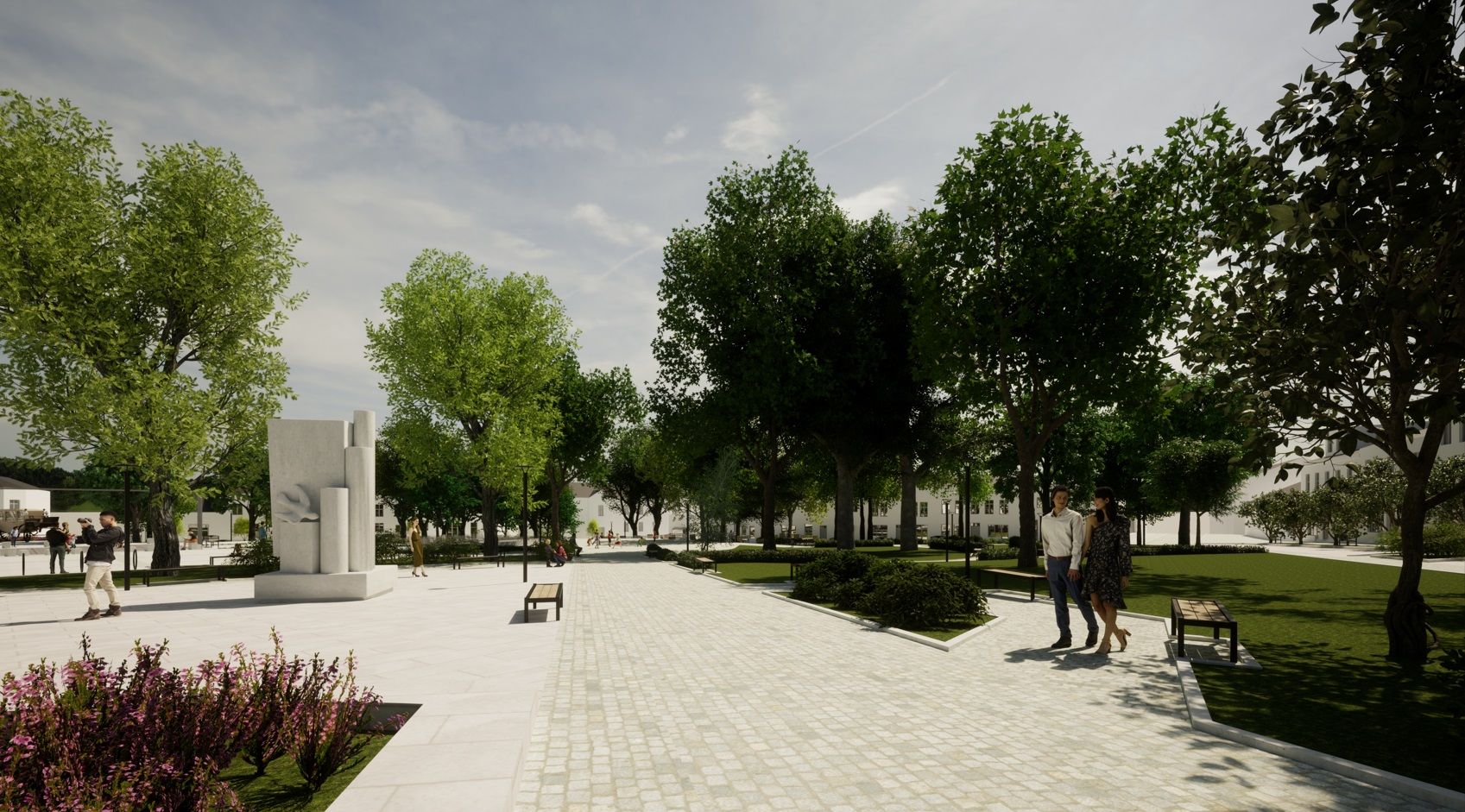 - Wykonanie nowej nawierzchni ciągów pieszych oraz placów z płyt granitowych