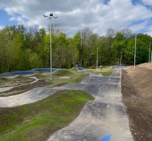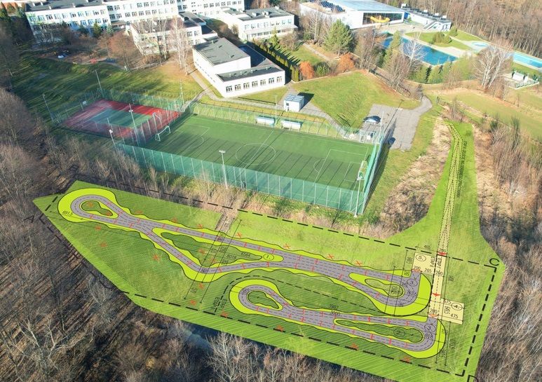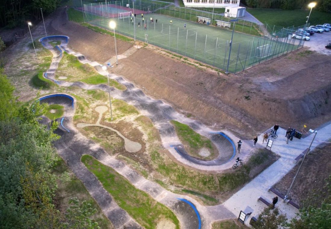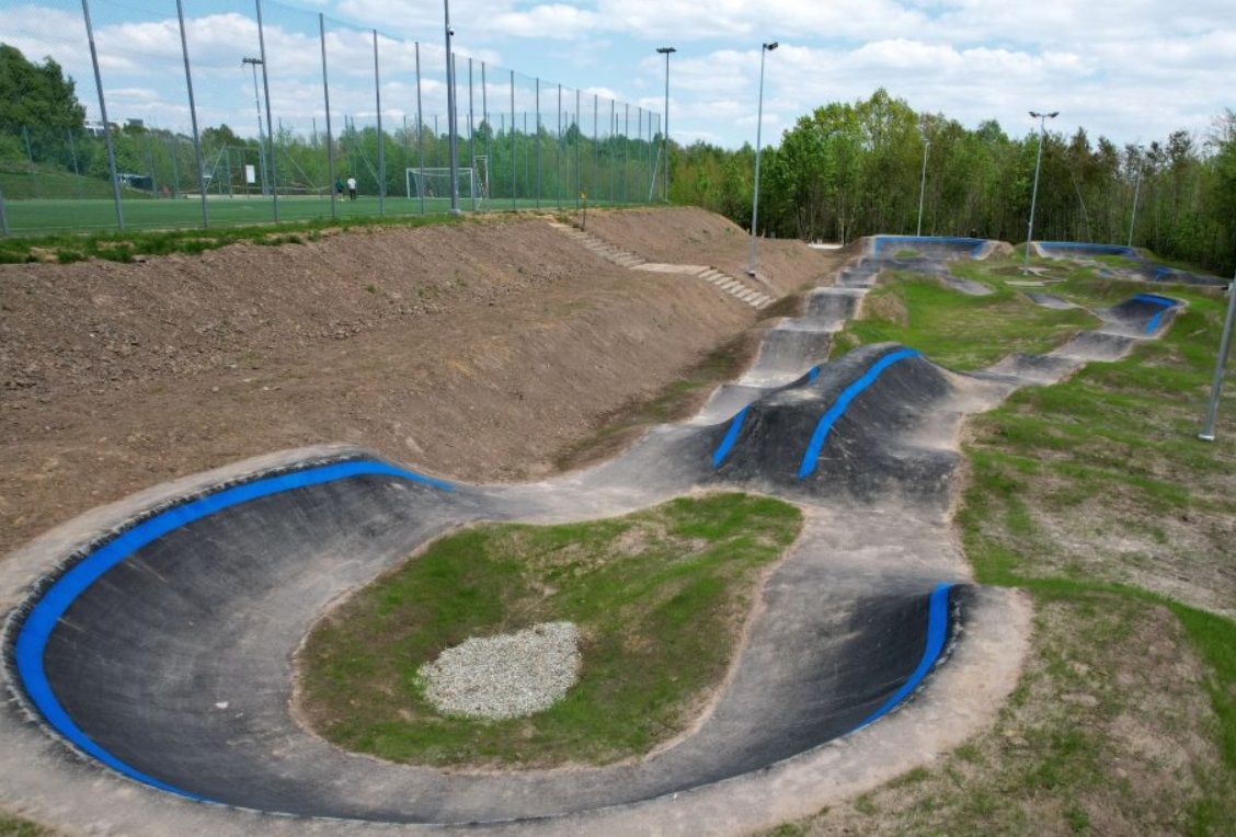 Budowa toru rowerowegy typu "Pumptrack" z rozbiórką istniejących boisk, wykonaniem drenaży, ciągów pieszo jezdnych oraz z oświetleniem toru.