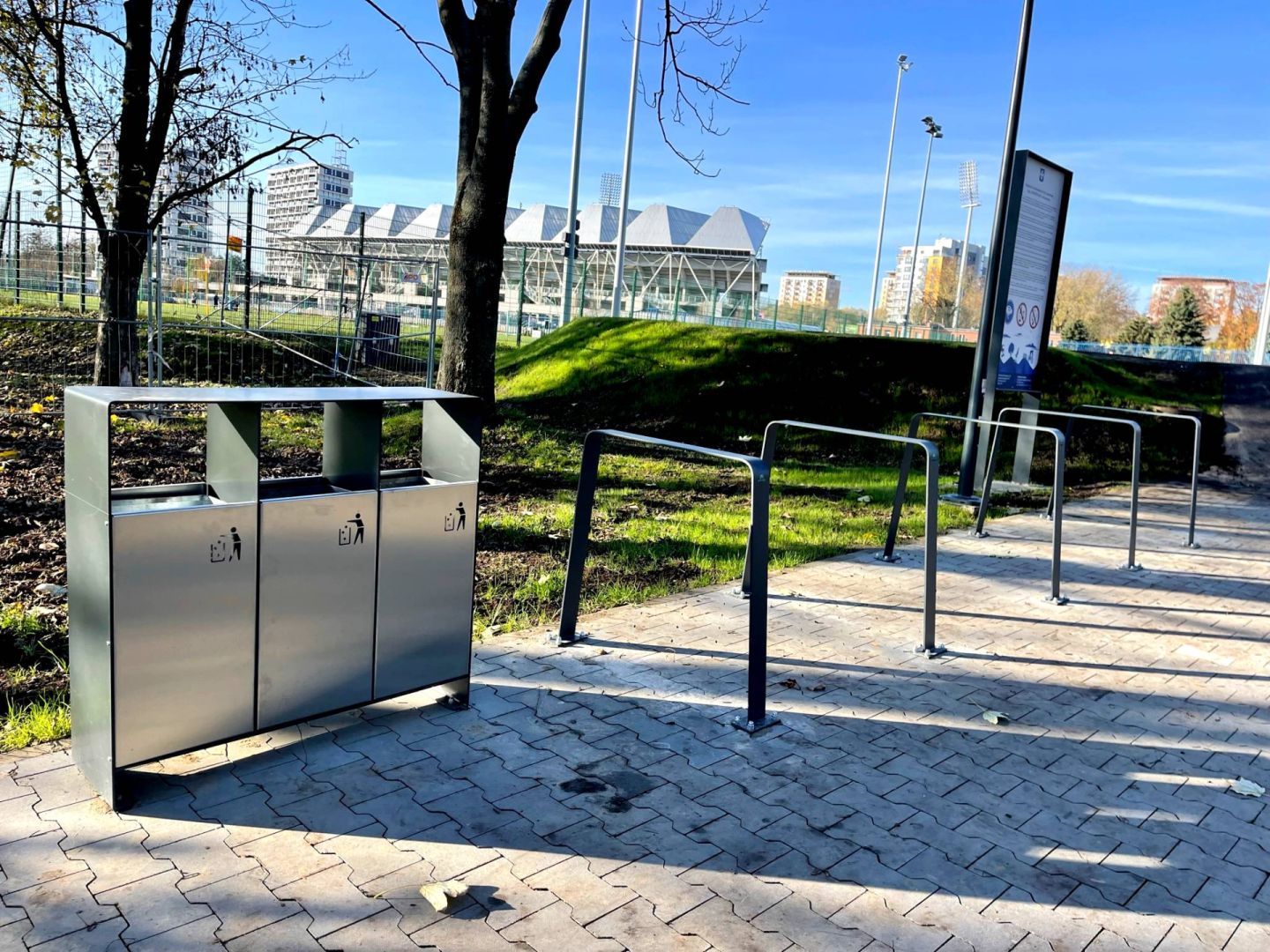 Wykonanie robót budowlanych polegających na budowie zespołu torów rowerowych typu pumptrack wraz z odwodnieniem, chodnikiem, obiektami małej architektury, oświetleniem i zielenią.