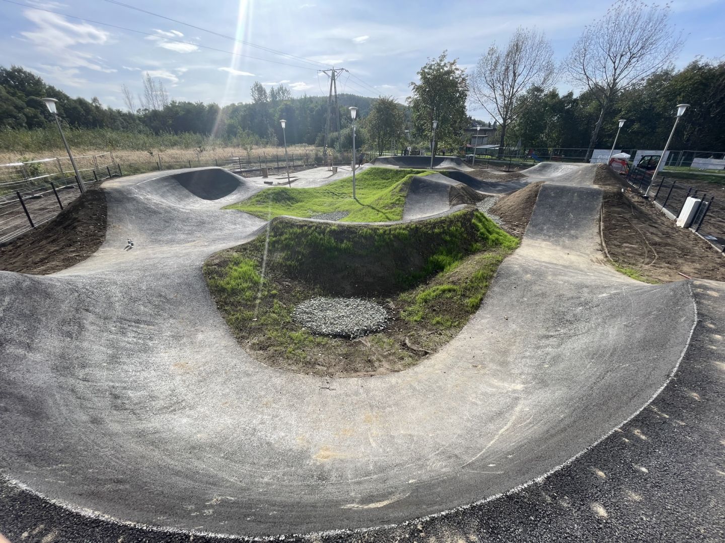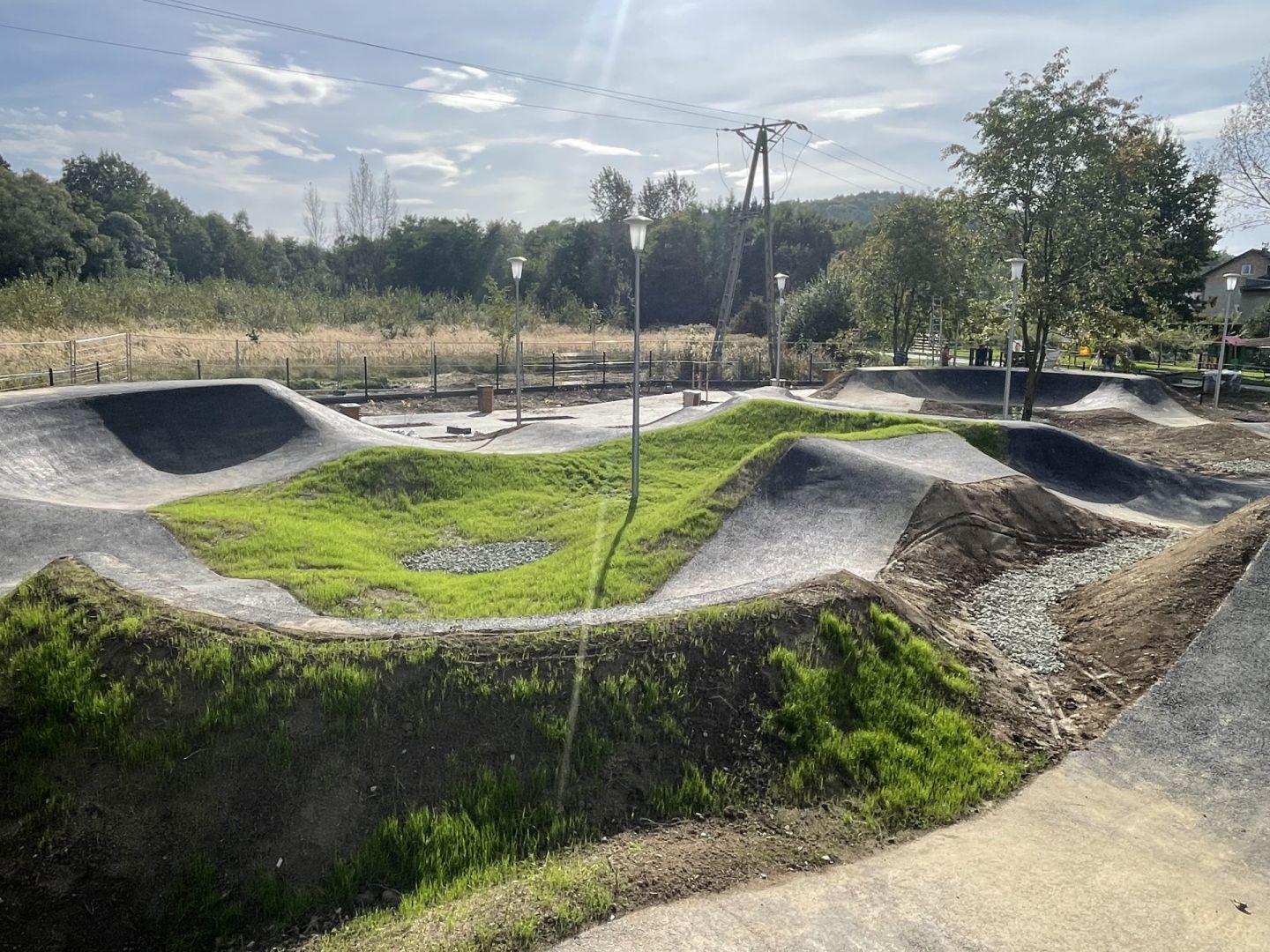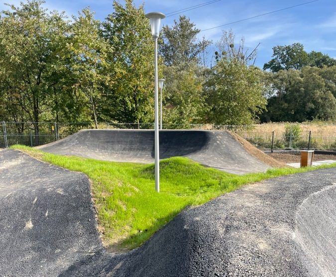 Budowa toru rowerowego typu "pumptrack"  wraz z zagospodarowaniem terenu, tj. z utwardzoną komunikacją wewnętrzną, ogrodzeniem terenu, instalacją oświetlenia oraz monitoringu, budową obiektów małej architektury, nasadzeniem drzew i krzewów.